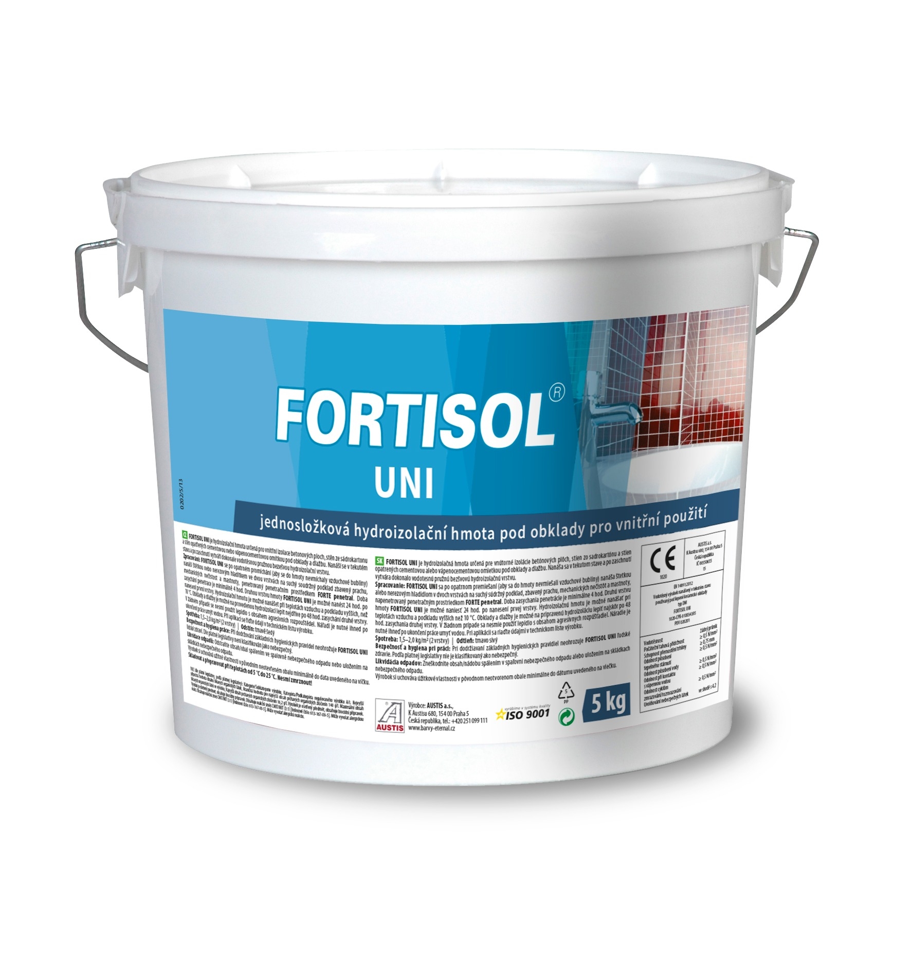 Hmota FORTISOL UNI je určena pro hydroizolace betonových ploch, stěn opatřených cementovou nebo vápenocementovou omítkou. Používá se pod obklady a dlažbu a je vhodná i pro hydroizolace sádrokartonu. Hydroizolační hmota FORTISOL UNI se nanáší v tekutém stavu a po zaschnutí vytváří dokonale vodotěsnou, pružnou, bezešvou hydroizolační vrstvu.