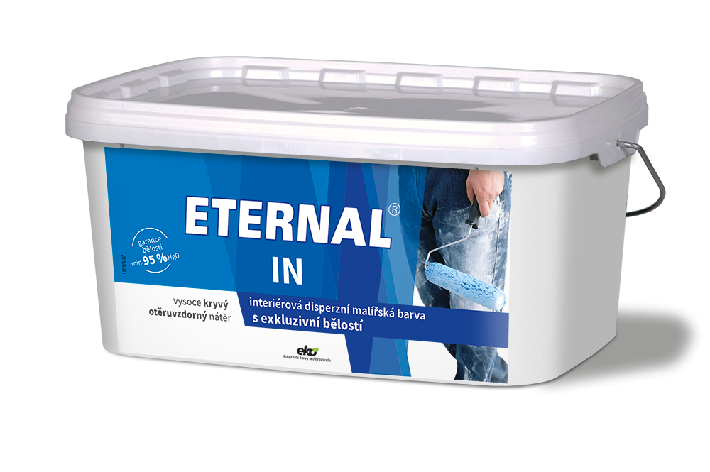ETERNAL IN je vodou ředitelná, zářivě bílá, příjemně parfemovaná interiérová disperzní barva, vyznačující se vysokou kryvostí a velmi příjemnými aplikačními vlastnostmi. Díky své vysoké paropropustnosti a odolnosti vůči otěru za sucha je předurčená k povrchovým úpravám stěn interiérů ze sádrokartonu, minerálních, sádrových, akrylátových omítek, betonu (panelů i monolitů), povrchů z vláknocementových, sádrovláknových a dřevotřískových desek, tapet k tomu určených a jiných savých podkladů. Je vhodná také pro aplikaci na sanační omítky.
